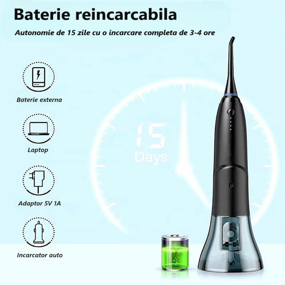 Irigatorul portabil PureJet™ Floss pentru curatare profunda a dintilor