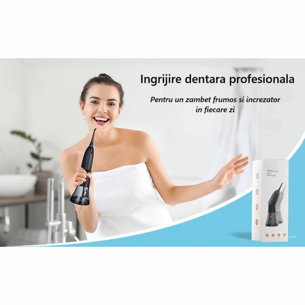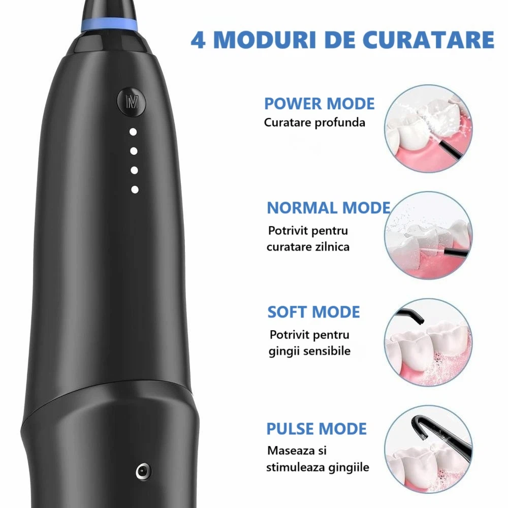 - Curatare profunda: Irigatorul poate curata in profunzime zone in care periutele de dinti si ata dentara nu pot ajunge. Acest lucru ajuta la indepartarea eficienta a bacteriilor, prevenind inflamatia si sangerarea gingiilor.