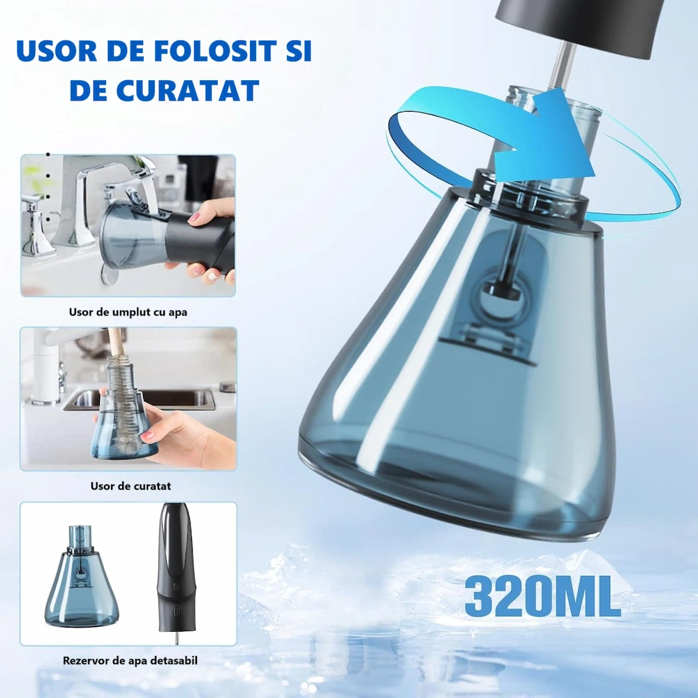 • Un rezervor mare de apa detasabil de 320 ml ofera utilizare convenabila fara a necesita o conexiune constanta la o sursa de apa.